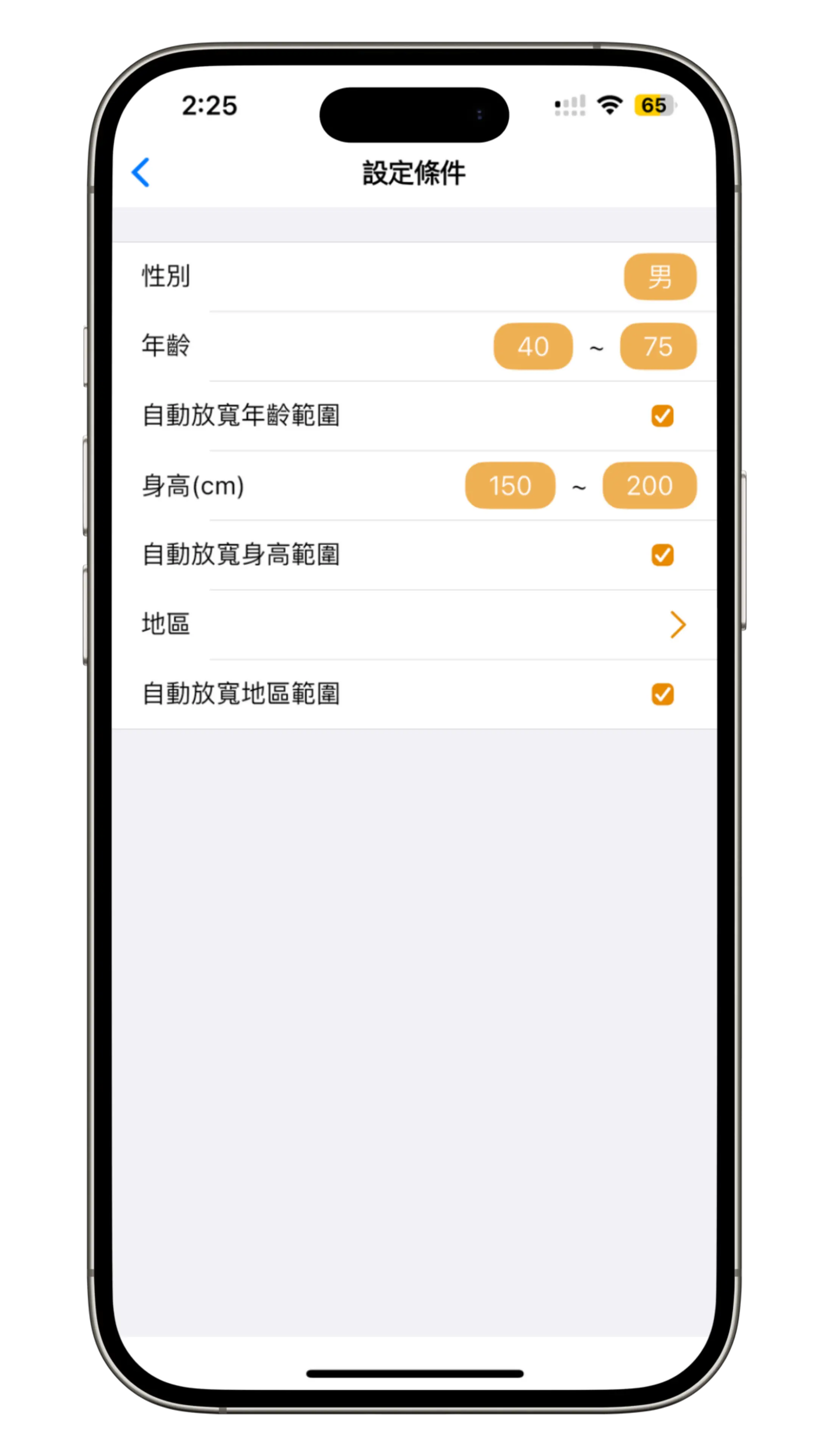 利用年齡(35+、40+、50+)、城市、職業等條件,篩選並找到理想對象